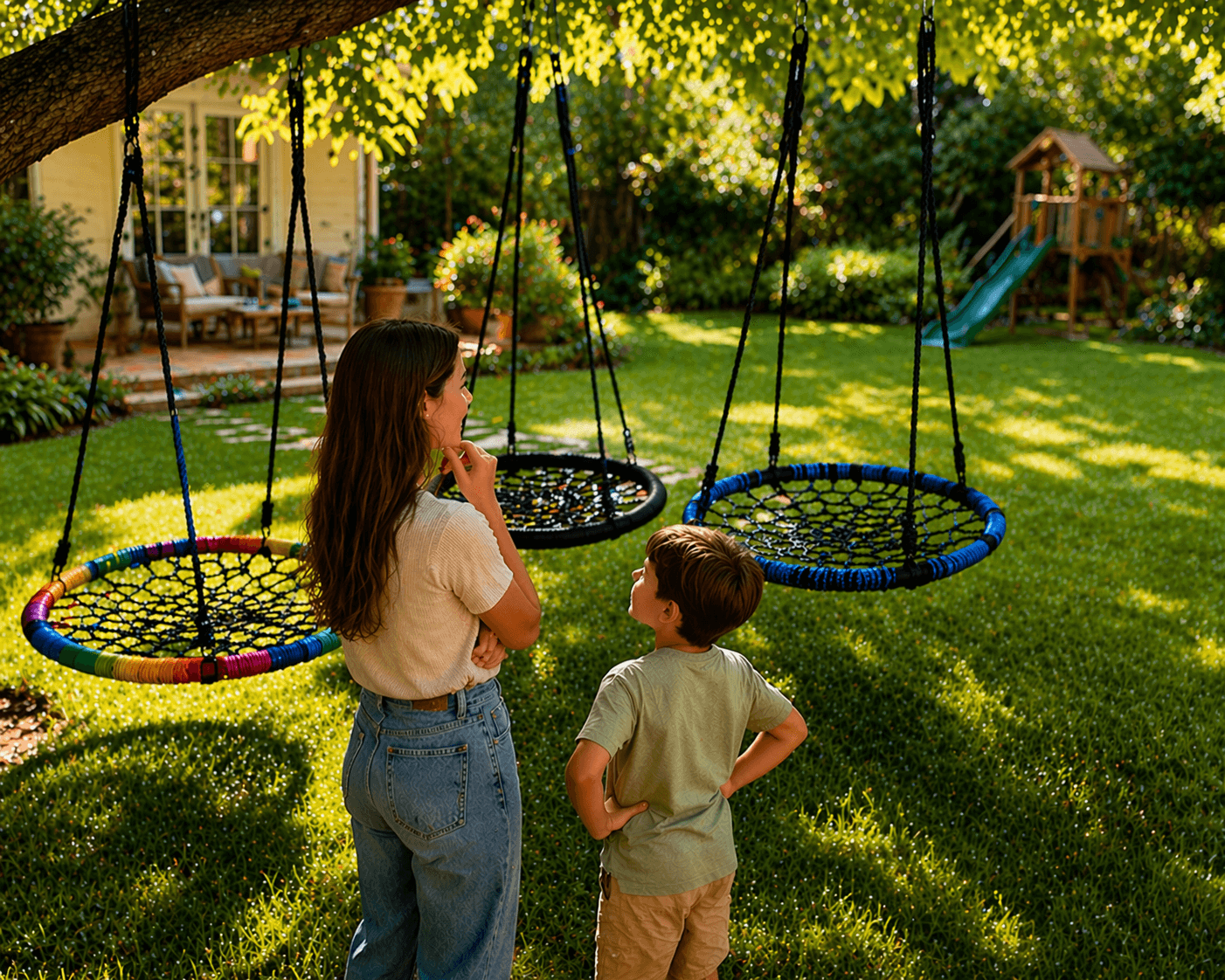 Unlike traditional tree swings, which can feel limited or outdated, our round swings offer a more modern and spacious design. Their wide seating areas allow multiple users at once, making them ideal for families, friends, and shared experiences. From gentle swinging to simply lying back and relaxing, they provide a flexible way to enjoy the outdoors in your own way, especially when combined with different outdoor relaxation ideas.