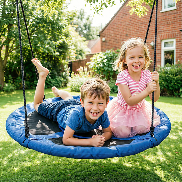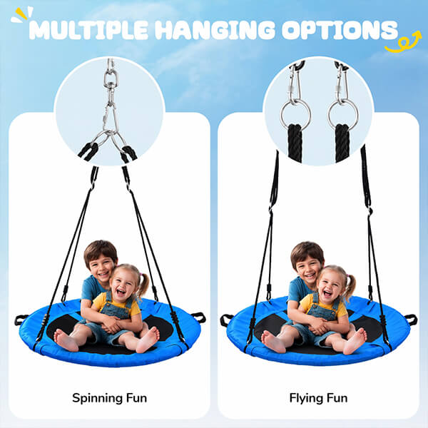 With a spacious 40-inch diameter, the swing provides plenty of room for children to sit, lie down, or swing together, while also being sturdy enough for adults to enjoy. The multi-strand braided ropes ensure excellent stability and long-lasting performance, even with regular use. Supporting up to 700 lbs, this swing is made to handle active play while maintaining a smooth and secure experience.