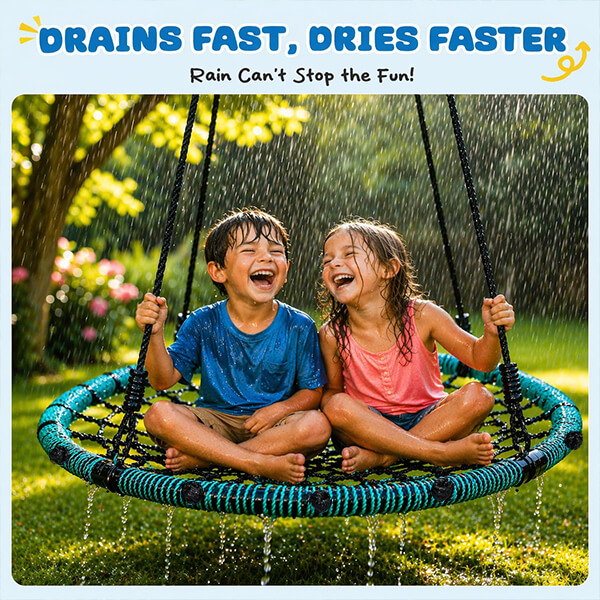 Perfect for encouraging outdoor play, this web swing helps children stay active, develop balance, and enjoy fresh air. Its vibrant turquoise color adds a modern, eye-catching touch that stands out beautifully in any setting. Bring joy, comfort, and adventure to your outdoor space with this versatile tree swing—made for laughter, relaxation, and unforgettable memories.