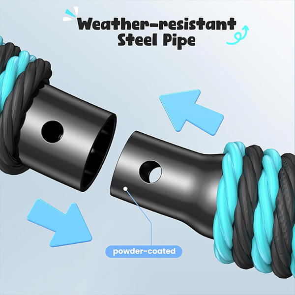 Enjoy endless outdoor fun with this 40” Turquoise & Black Round Tree Swing, built with a strong steel frame and durable rope for maximum safety and comfort. Easy to install with included straps, ready in minutes for backyard adventures. Grab yours now and bring joy to your outdoor space!